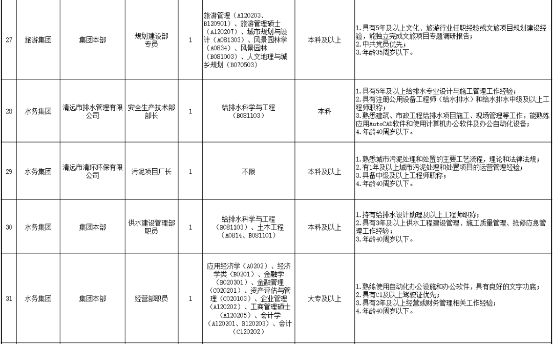 詳見清遠市市屬國有企業(yè)2022年公開招聘工作人員崗位表。