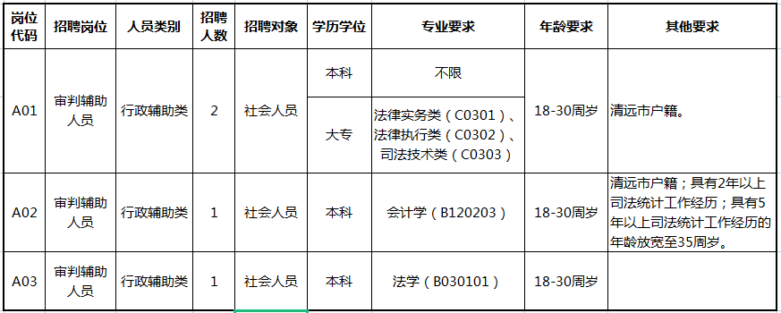 根據(jù)工作需要,清遠市清城區(qū)人民法院現(xiàn)面向社會公開招聘專項工作聘員4名。具體崗位設置如下: