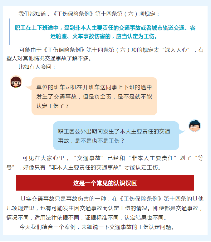 可見,職工交通事故情形不同,適用法律依據(jù)就可能不同,認定結(jié)果也不盡相同,千萬不要混淆操作。