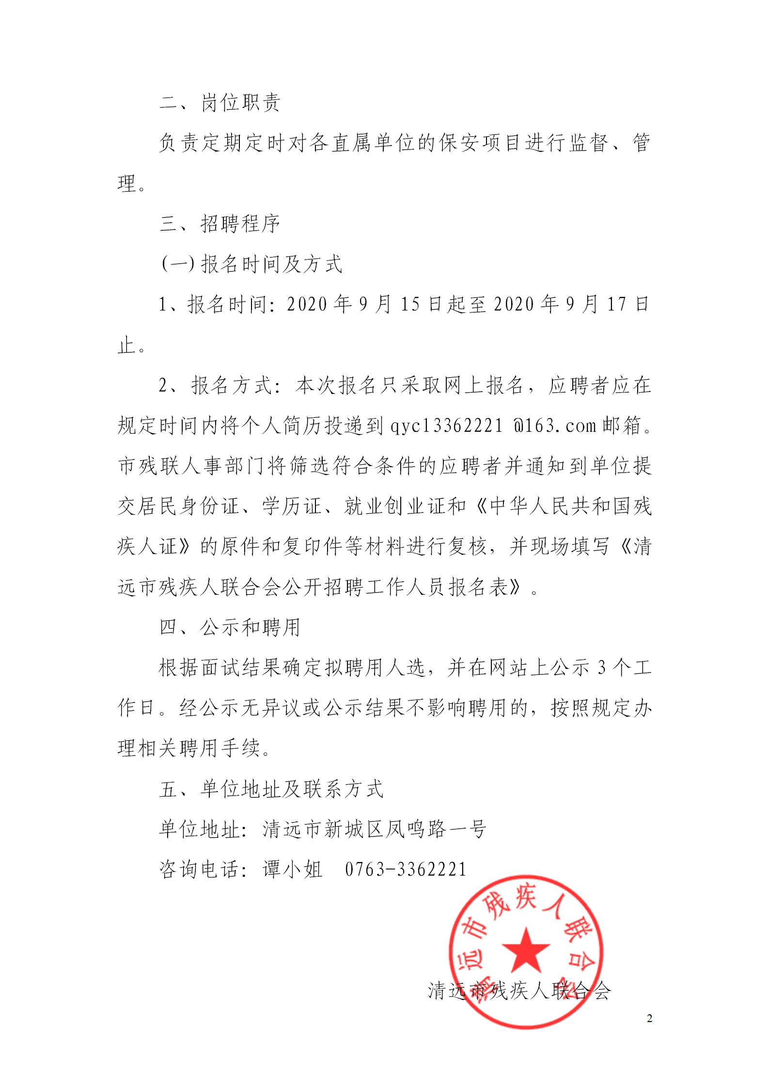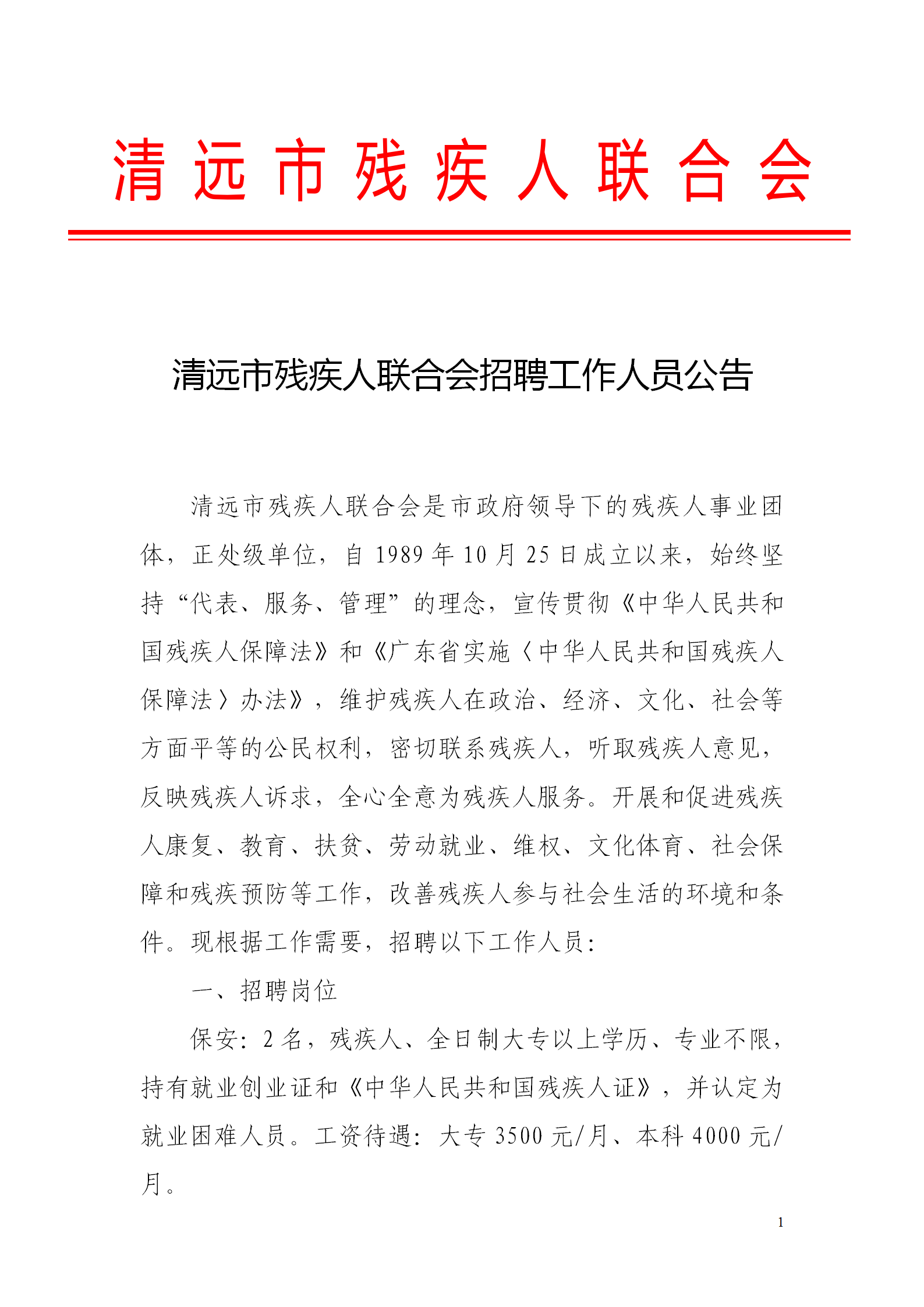 清遠市殘疾人聯(lián)合會招聘工作人員公告